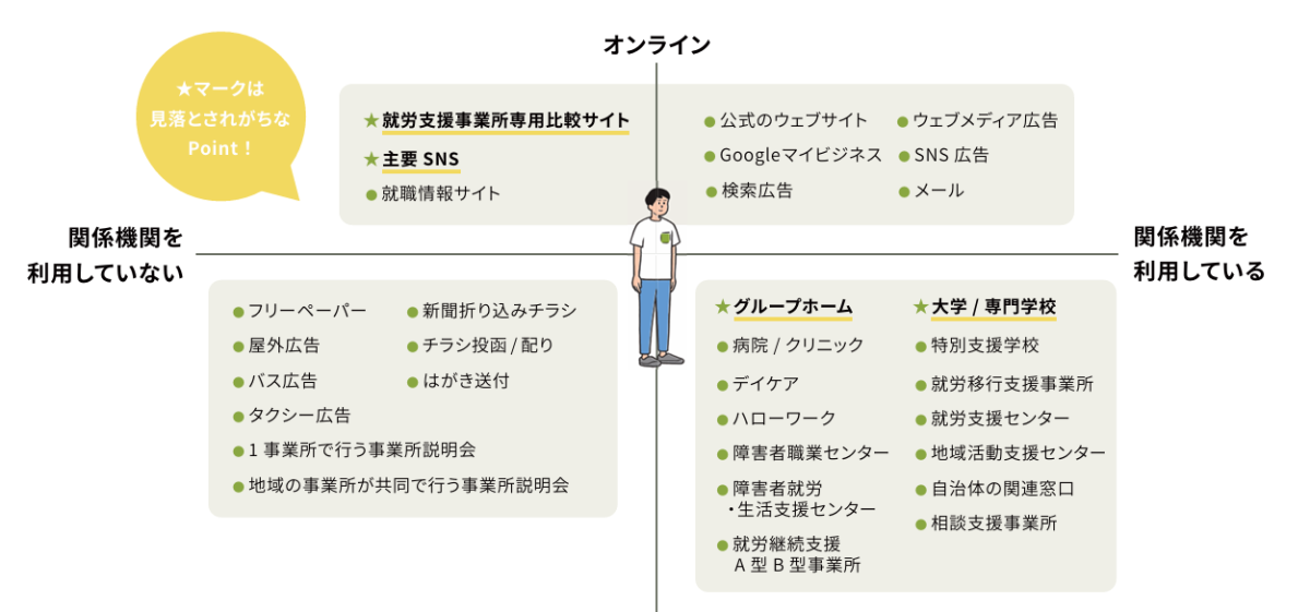 ウェブサービス上には就労支援施設を探している方が 多く存在し、関連施設からの紹介にとどまらず利用者 自身が情報収集を行い選